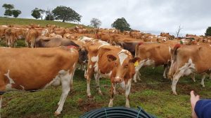 We have had Guernseys on this farm since first starting in 1948. Why stick with the Guernseys? Simply because their milk is the best. Not only does it taste good, but it is good for you too. God blessed us with a cow called ‘Belladonna’ which became a Guernsey world champion, breaking the records in milk, butterfat & protein. Belladonna peaked at an amazing 70.5 litres of milk in one day. Considering that an average cow gives approx. 15 litres in a day, she truly was an amazing cow. If you get a chance, give the Guernsey milk a go. You will find this milk under the Farmer’s Choice Gold Top label. On the top menu bar is ‘Store Locator’, click and enter your suburb to find a shop near you.